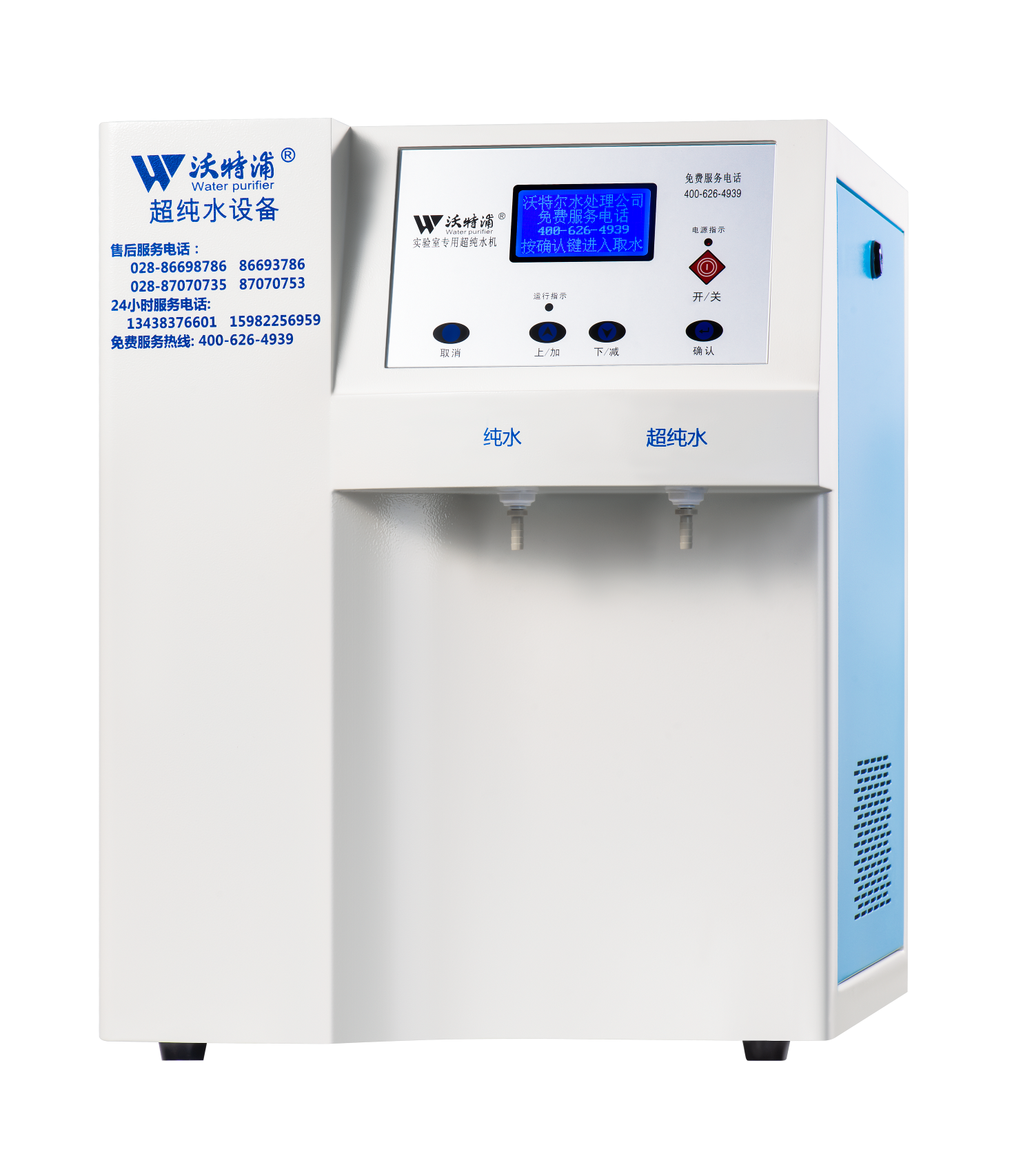 采用雙波長紫外消解系統(tǒng),除熱源超濾膜組件,采用進口離子交換樹脂過濾,使超純水能滿足各種實驗要求。